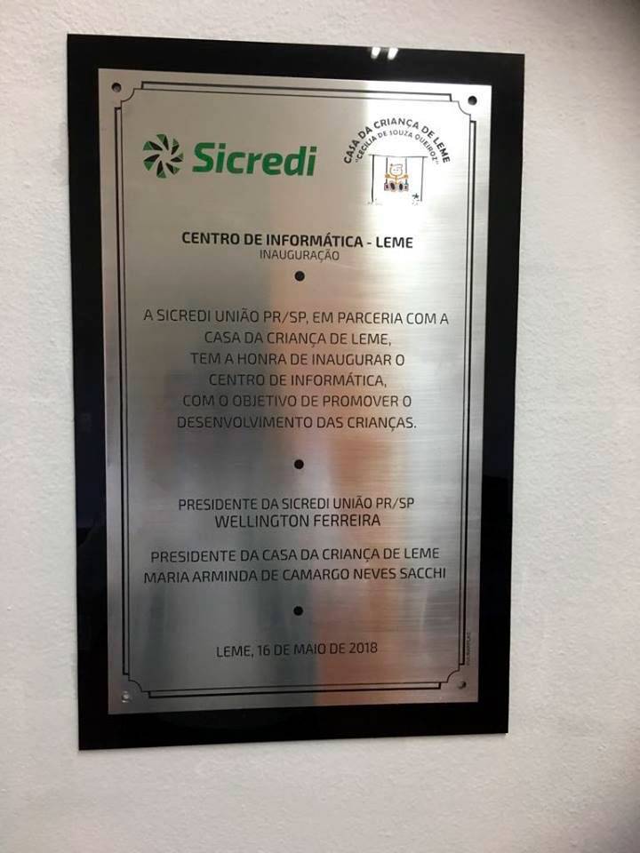 O Banco “SICREDI” -União PR/SP, nos presenteou com Sala de Informática. Através dela nossas crianças complementarão e enriquecerão seus conhecimentos.